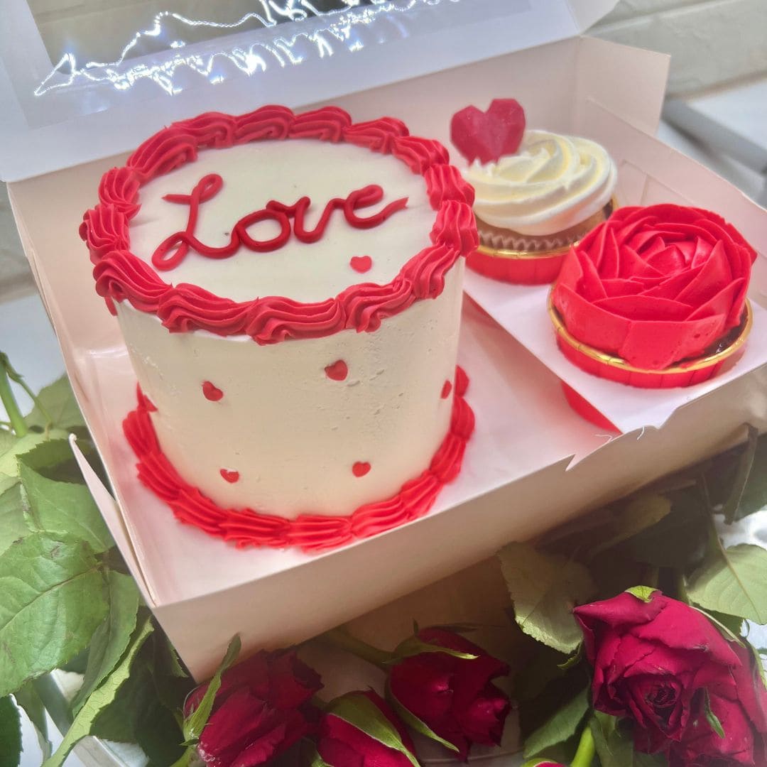 - Szerelem box: 2 személyes LOVE torta és 2 db cupcake
